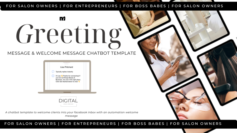 If you're looking to improve customer experience and save time, Digital Salon Solutions' greeting text & welcome message chatbot template for salons using ManyChat is the perfect solution for you.